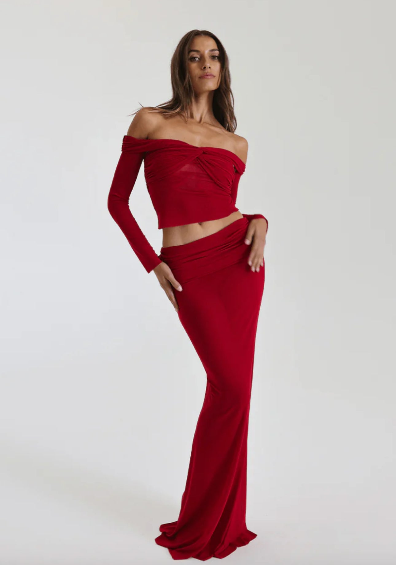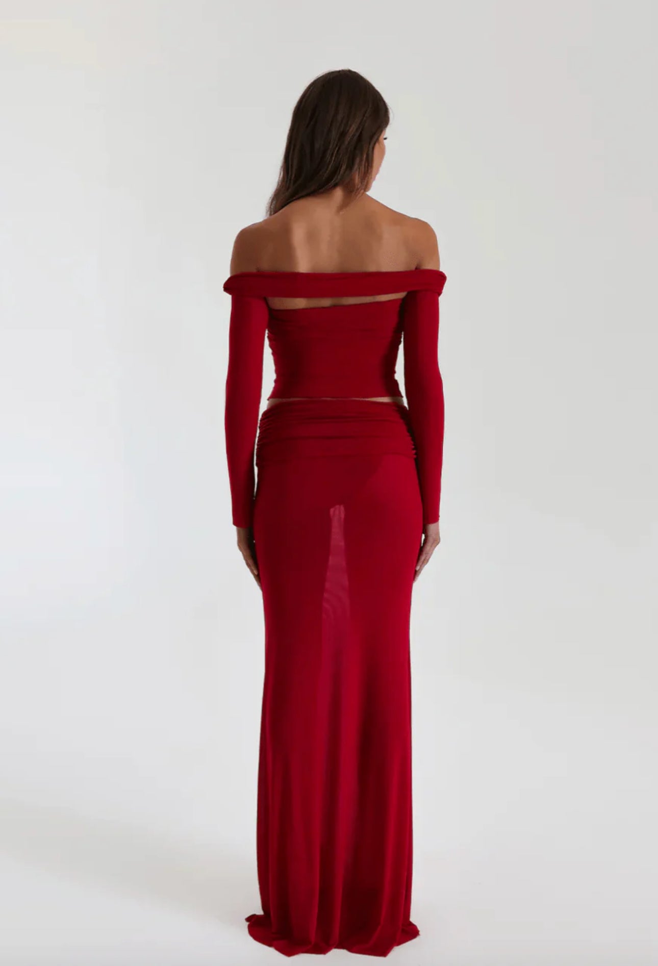 A longline crop with notions of romance, Charlotte flirts with the sheerness of soft-stretch mesh. Styled with the Charlotte Skirt.
